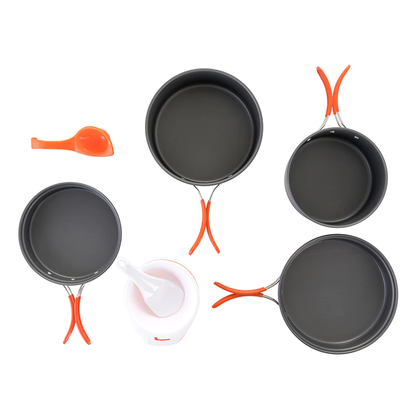 The Fire Maple Fire-FEST is a 3 to 5 persons Cookset that contains 2 Pots; 2 Frypans; 4 Bowls; 2 Spoons and a sponge. Using imported anodizing aluminium, the cook-set is heat and friction resistant. The frypan can also be used as pot cover. The set is stored in a Mesh Bag making camping or hiking effortless.