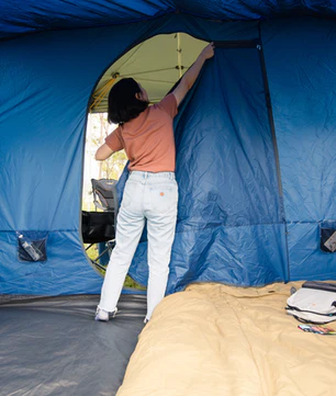 The roll-back flysheet allows increased airflow in warmer conditions, making the portico comfortable in a variety of climates. The integrated SkyMesh roof panel enhances ventilation and provides the added benefit of enjoying night-sky views while still remaining protected from insects.