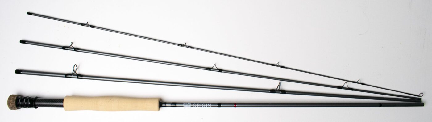 Each Origin fly rod includes a cotton rod bag and slate grey triangular rod tube.